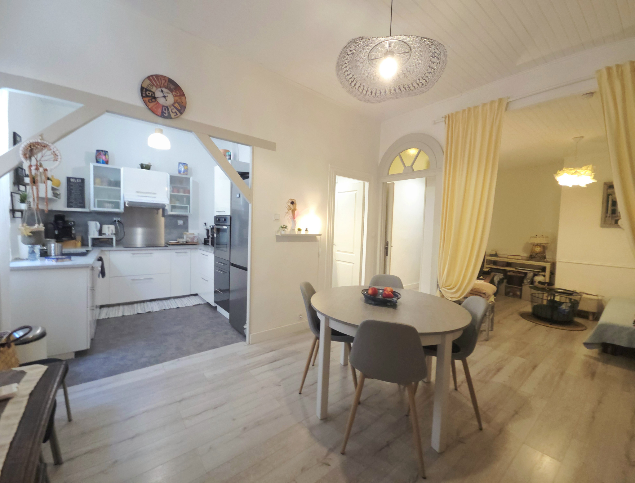 Emplacement recherché ! A " deux pas " des célèbres Halles de Sète et du coeur de ville , coquet type 2 de 46 m² rénové, composé d' une véritable pièce de vie et de sa cuisine contemporaine équipée , d' un espace salon offrant la possibilité d' une seconde chambre ponctuelle , une chambre , un degagement avec rangements , une cour de plus de 4 m² et espace buanderie . L' appartement est en parfait état , dispose de la climatisation réversible . Vous n' avez plus qu' à poser vos valises !
