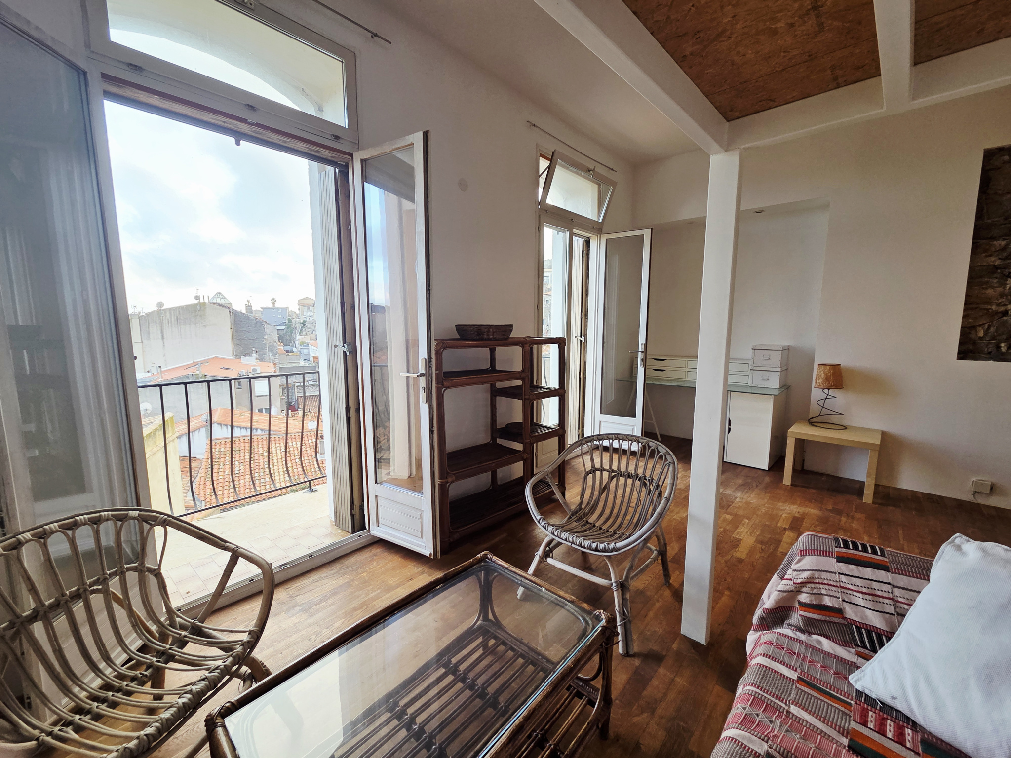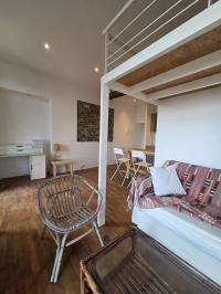 Coup de coeur garanti ! Situé sur le bas du Quartier Haut à deux pas de la Mairie et du coeur de ville , dans immeuble de caractére , superbe appartement à l' esprit Loft ! Bel espace de vie baigné de lumière de plus de 24 m² , astucieusement aménagé et optimisé , avec une mezzanine de 7 m² offrant un coin nuit , un linéaire de cuisine contemporain aux finitions inox, et d' une salle de bain avec wc . L' appartement s' ouvre sur un beau balcon filant offrant une vue dégagée et imprenable sur les toits de la ville , le Port de Sète et la Mer à l' horizon , l' église Saint Louis . La copropriété dispose également d' un jardin commun , véritable havre de paix en plein coeur de ville . Une cave privative de 5 m² compléte le bien . Immeuble de caractère sain